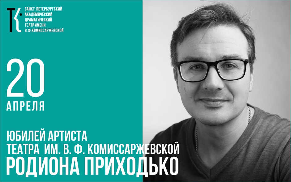 20 апреля – юбилей артиста Театра им.В.Ф.Комиссаржевской РОДИОНА ПРИХОДЬКО. Его уникальная одаренность синтетического актера сразу была замечена и с успехом реализована. За время работы он сыграл десятки разноплановых ролей. Воздушный Ариэль в «Буре» и недотепа-крестьянин Пьеро из «Дон Жуана»; астроном-мечтатель Миррою в «Безымянной звезде» и виртуозный карьерист-взяточник Белогубов из «Доходного места»; любвеобильный прохиндей Рауль из «Мыльных ангелов» и самовлюбленный художник-авангардист в «Графомане»; человек — функция в спектакле «Прикинь, что ты Бог», обретающий свою потерянную душу, и великолепный в своем комизме Шлюкер Тощий из спектакля «Холодное сердце»; красавец Март в детской сказке «Двенадцать месяцев» и шаржированный интеллигент-пьяница в спектакле «Я вернулся в мой город…»; обаятельный подлец Комаровский в «Докторе Живаго» и врач с ёмкой фамилией Рукосуев в «Случае с метранпажем» («Двадцать минут с ангелом»); трогательный в своей нелепости скрипач-пьяница в спектакле «Я вернулся в мой город» и легкий, ироничный и добросердечный Штольц в спектакле «Обломов»…