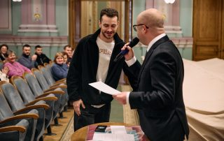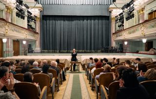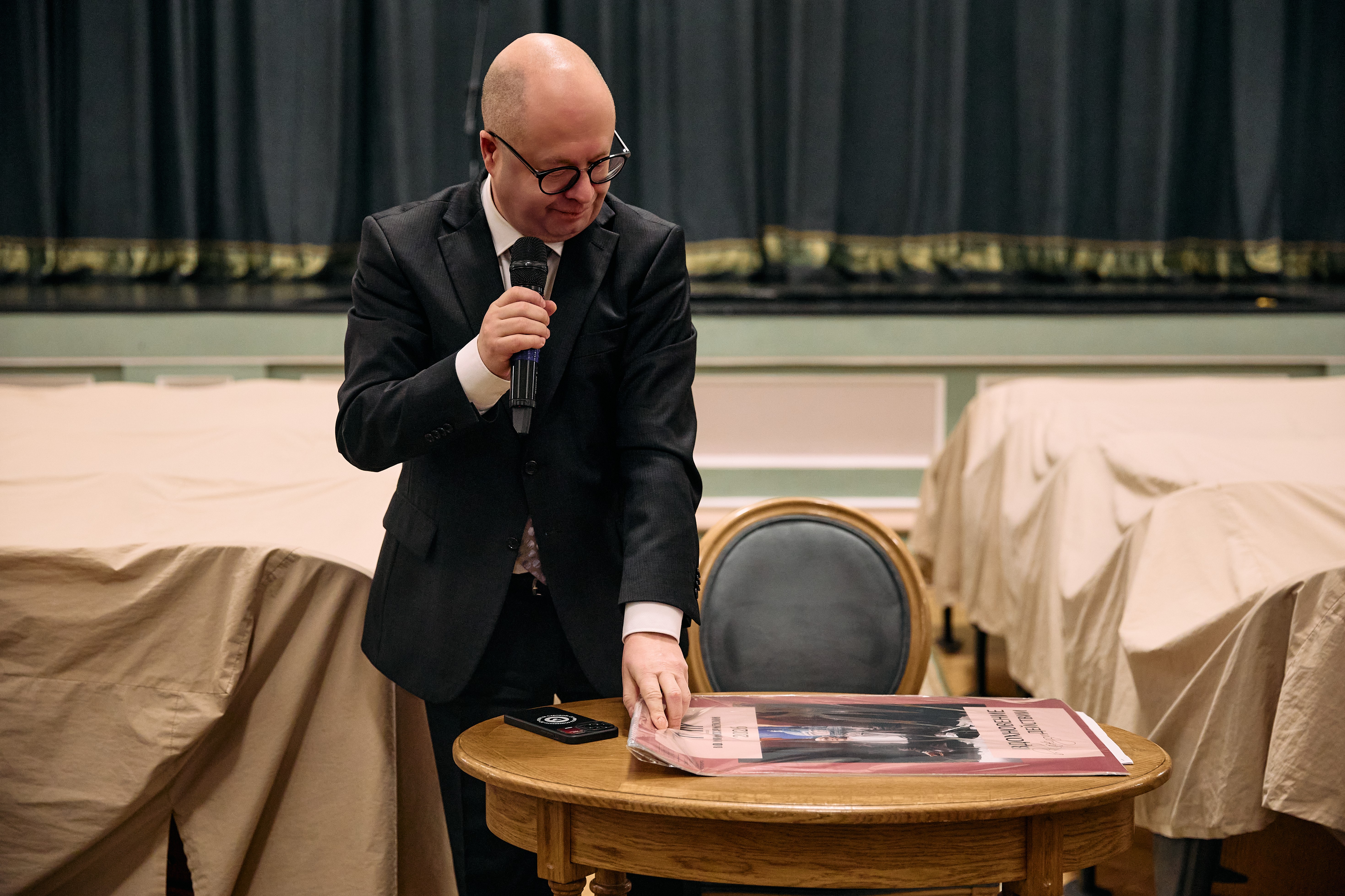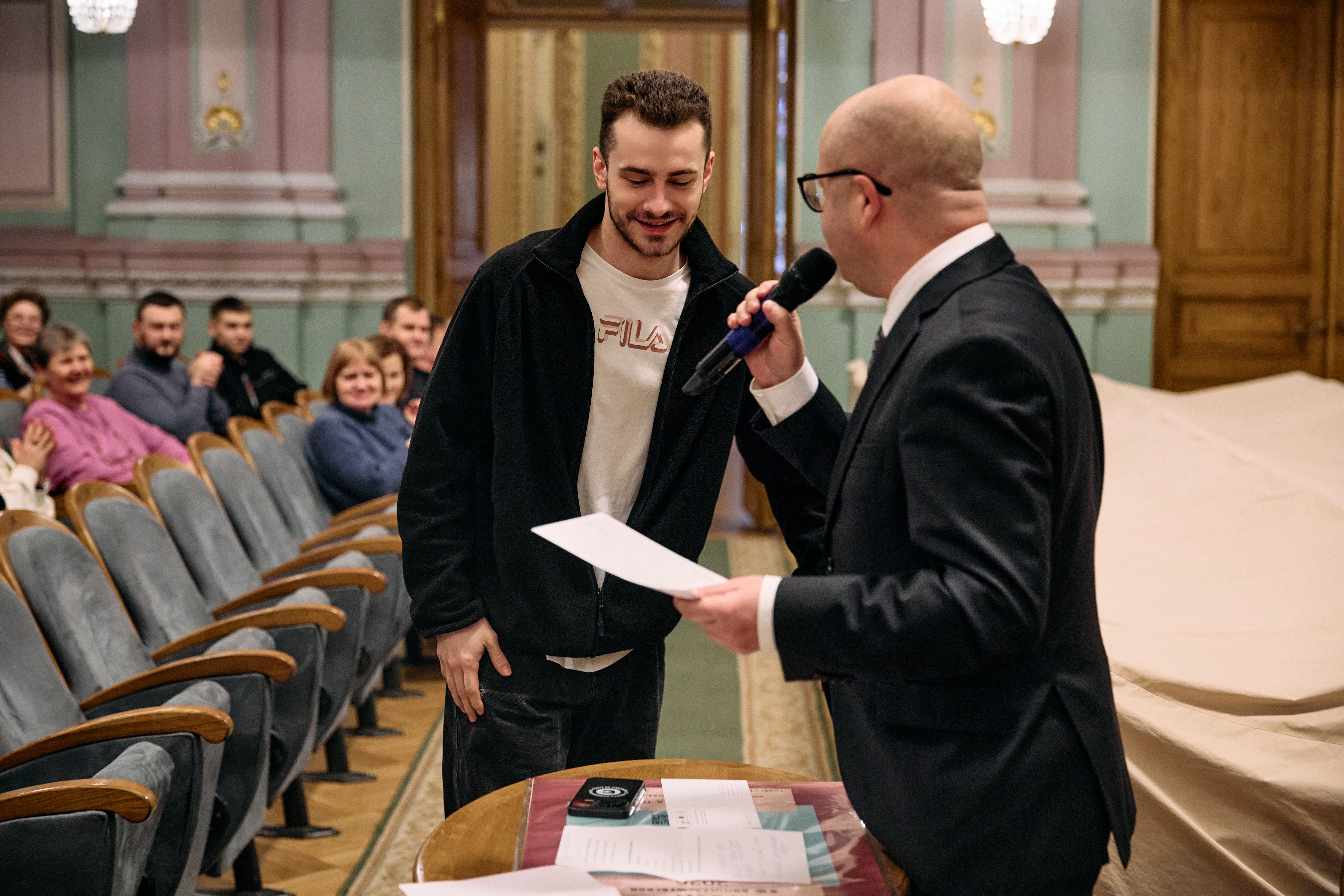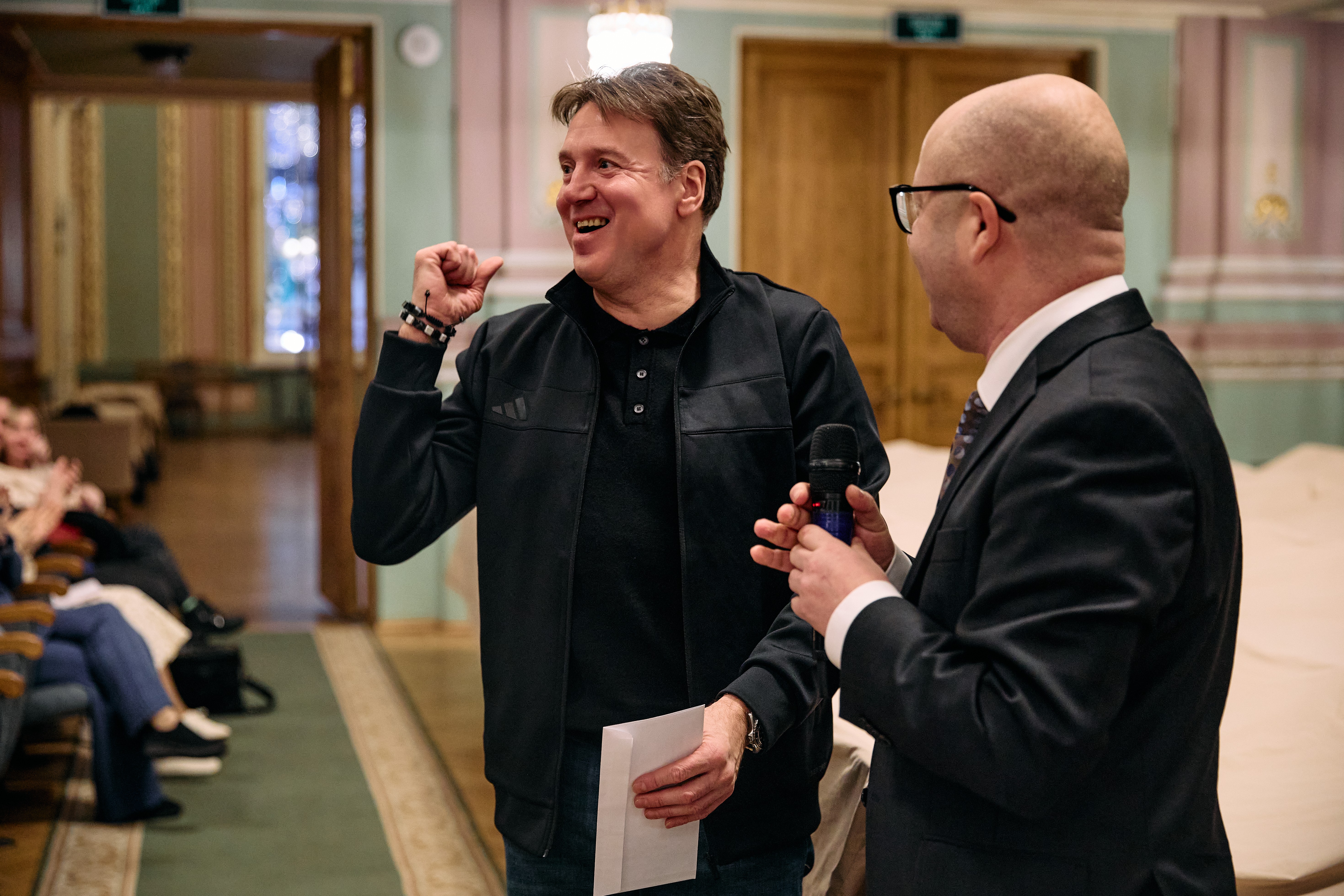 29 декабря 2025 года в Санкт-Петербургском академическом драматическом театре имени В. Ф. Комиссаржевской состоялось торжественное собрание, посвященное итогам уходящего года. В зрительном зале собрался практически весь коллектив: актеры, режиссеры, художники-постановщики, работники цехов и администрации.
