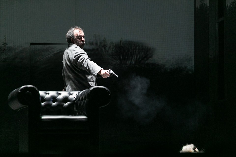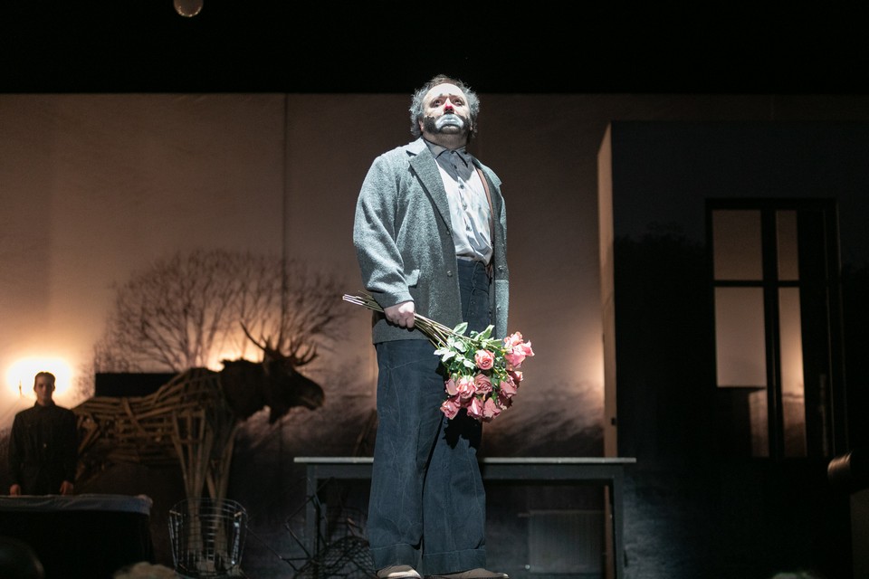 Примечательно, что в спектакле Войницкий стреляет не в самого Серебрякова, а в его парик, лежащий на сцене. То есть палит по видимостям, украшательствам, атрибутам, но не по сущностям, не по личностям, не по обидчикам. Его трагедия в том, что он уже давно потерялся во внутреннем пейзаже своей грезы. Он не способен жить ни для других, ни для себя, хотя и уверяет всех, что четверть века только это и делал. Мы этого не видим, он не контактирует ни с одним из обитателей дома. Серебряков его боится, Елена жалеет, Соня обижается, Мария Васильевна ни во что не ставит, Астров и вовсе смеется. Войницкий в спектакле ничего не делает, не ударяет даже пальца о палец, он пьет, ест, спит и глазеет на покорившую его сердце нимфу Елену. Он погружен в омут пригрезившейся жизни, не замечая, что на этих воображаемых скачках не только опоздал на поворот, но и на его коне уже давно оказался другой — сначала Серебряков, потом Соня, а затем и Астров, лихо обошедший его на финишной прямой. Войницкий же в этой истории остался незадачливым паяцем — его финалом жизни может служить только опущенный занавес одноименной оперы Руджеро Леонкавалло. Ария из нее звучит как раз в тот момент, когда суетливый, нелепый дядя Ваня в клоунском гриме вбегает на сцену с букетом осенних роз и натыкается на Астрова, в любовном пылу склоненного над Еленой. Пропала так и не прожитая жизнь. Финита ля комедия!