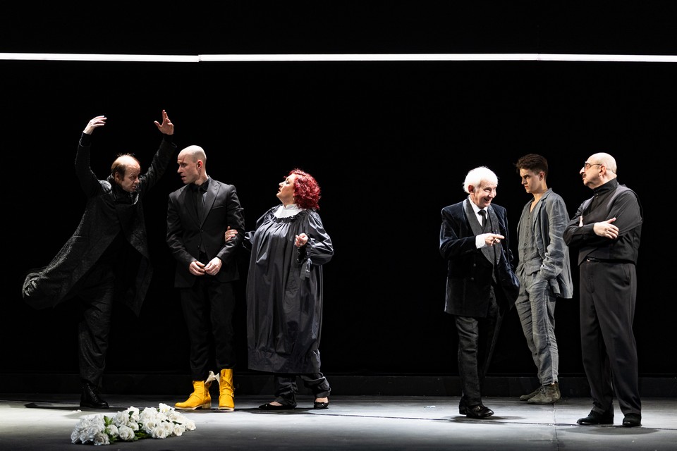 Кроме Марты, у главного героя опоры нет — так он полагает и только в конце поймет, что его одиночество абсолютно. Во врагах у барона весь город. Пастор (Юрий Ершов) напоминает то инквизитора, то подиумного персонажа — работа художника по костюмам Елены Жуковой превосходна и в этом случае, и в целом. Герцог и владетель Ганновера в исполнении патриарха труппы Георгия Корольчука пребывает в той счастливой для своего героя стадии деменции, когда еще можно управлять государством, но тебе уже никто не предъявит никаких претензий, ибо не имеет смысла, и, наоборот, такое царствование до поры для многих из свиты полезно и выгодно. Бургомистр — персона в высшей степени карикатурная, но и страшная. Анатолий Журавин щедро приправил образ своего персонажа идиотическим юмором, но от этого в итоге делается жутко. Приме Маргарите Бычковой досталась роль судьи, которая находчиво и моментально сочиняет не существующий доселе фонд помощи ганноверским деткам, в который отправятся материальные активы Мюнхгаузена, — за возможность обвенчаться при живой первой жене нужно платить. Но не только — еще абсолютно необходимо отречься от своих выдумок, принципов, от самого себя.