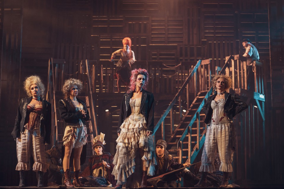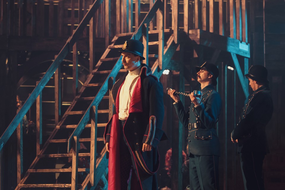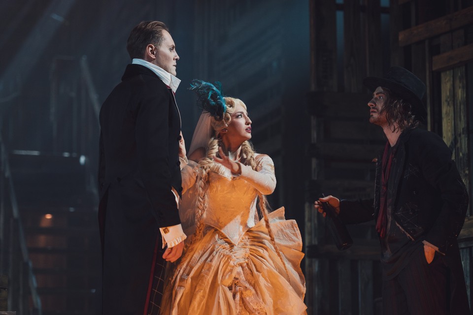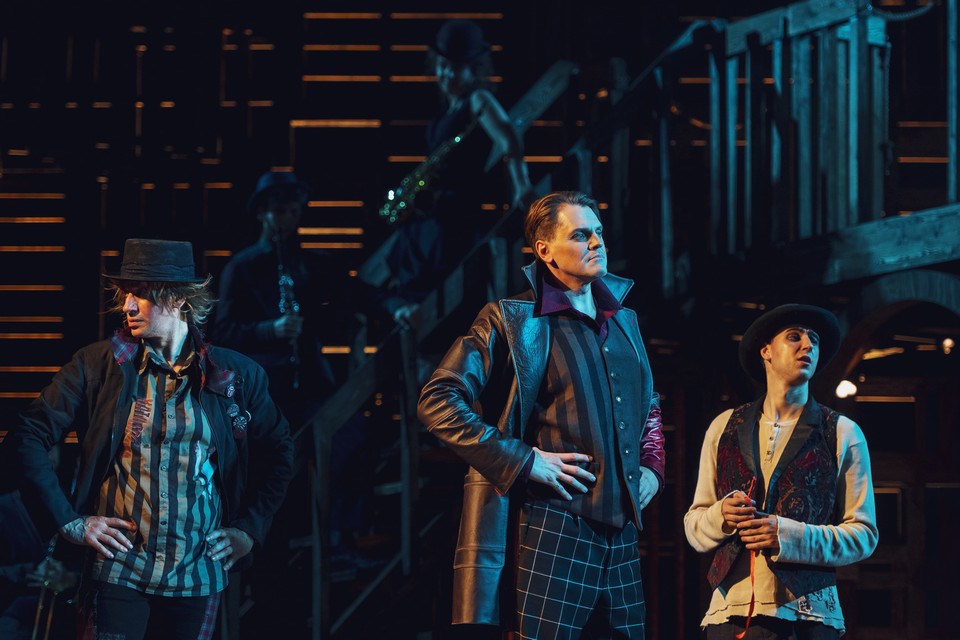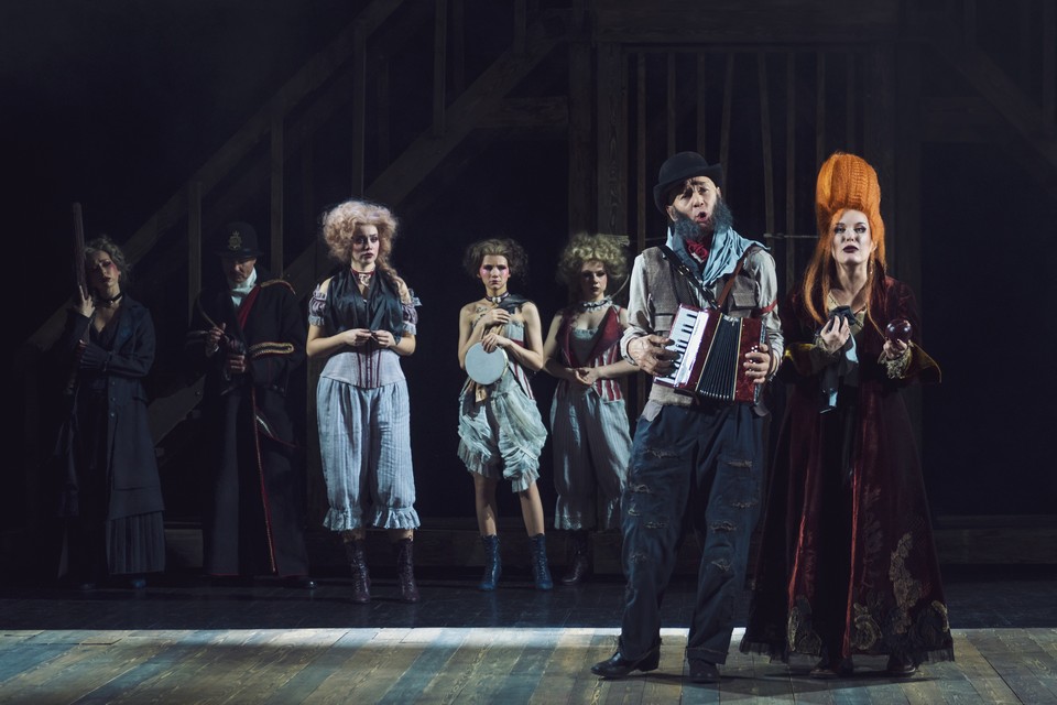 Почерк режиссера узнаваем с первых минут. Этот спектакль — про эмоцию, настроение, музыкальное впечатление, а не про глубокую рефлексию. Он виртуозно смешивает джаз и классику, современный юмор и историческую условность. Мобильные декорации, трансформирующиеся из лондонских трущоб в полицейский участок или дом терпимости, оживают благодаря сложному свету. Фантазийные, многослойные костюмы добавляют эксцентрики и задора.
