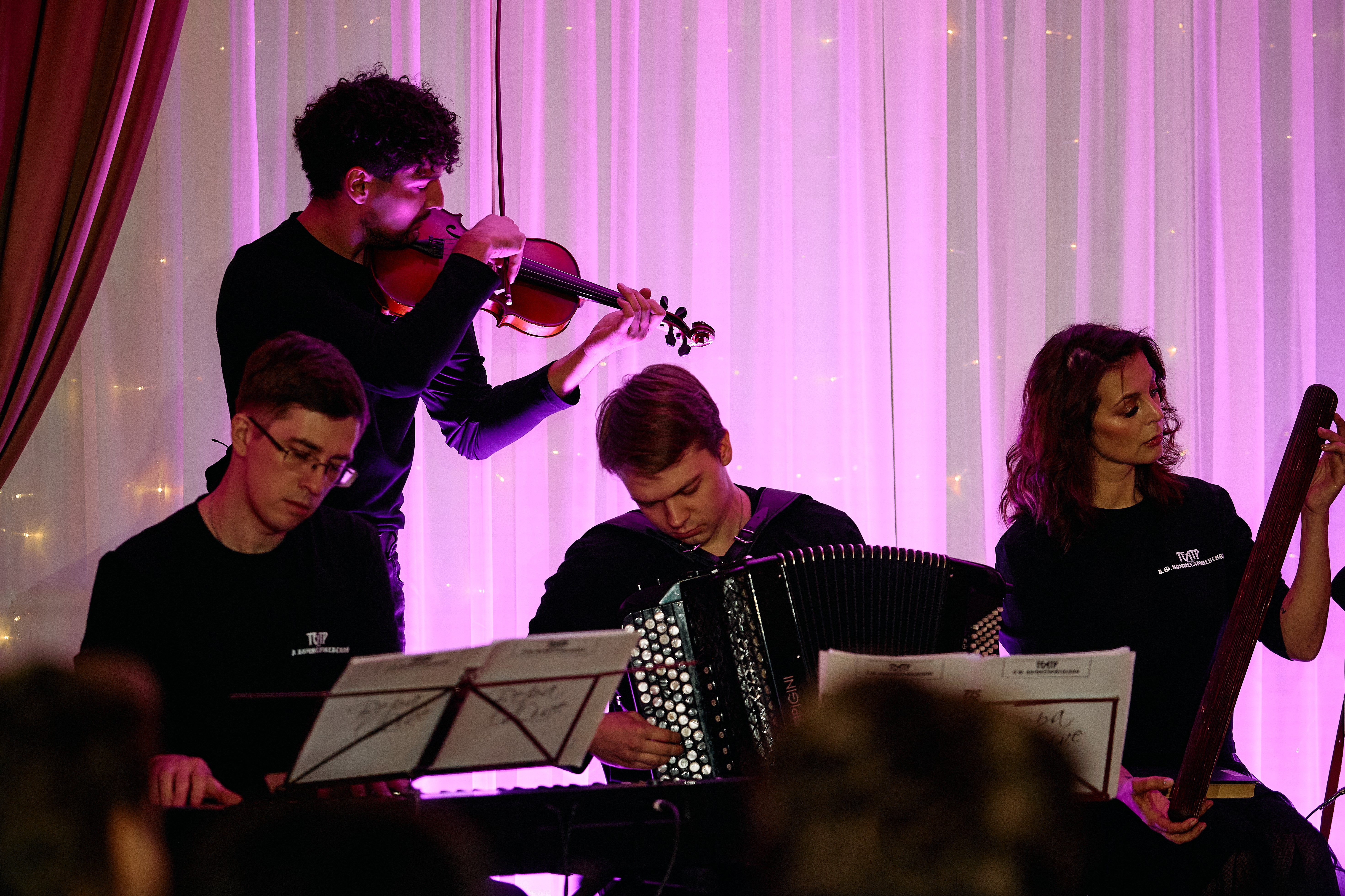 В музыкальном представлении принимают участие артисты театра имени В. Ф. Комиссаржевской: София Большакова, Кристина Кузьмина, Керим Базаров, Иван Васильев, Василий Гетманов и музыканты Арсений Кирюхин и Александр Ширунов.